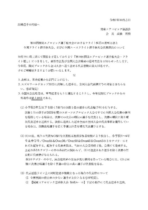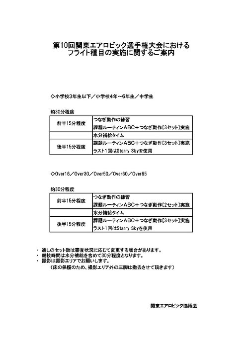 第10回関東エアロビック選手権大会 参加選手・コーチの皆様へ